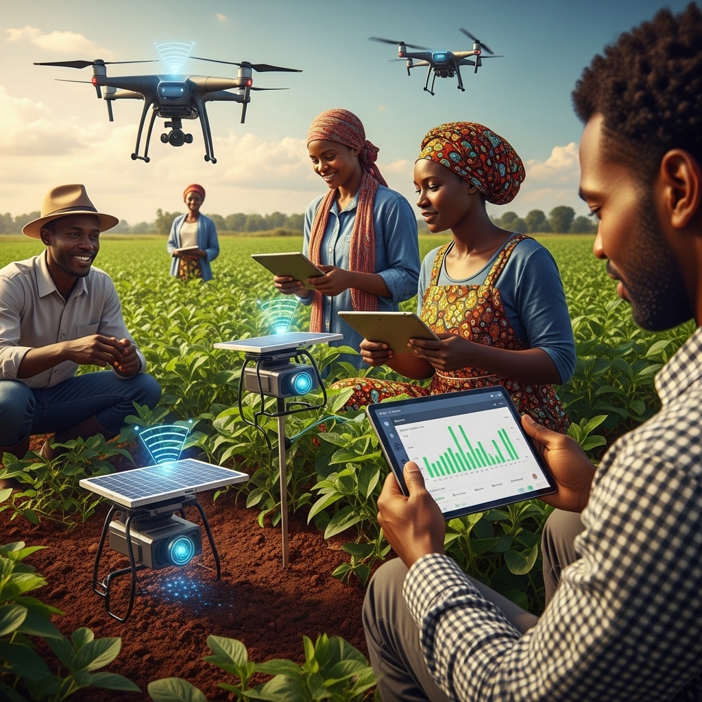 Smart Farming in Africa combines digital tools such as drones, sensors, artificial intelligence, mobile applications, and data analytics to help farmers make better decisions. This approach improves crop monitoring, increases efficiency, reduces waste, and gives farmers real-time insights into weather patterns, soil conditions, pest threats, and market trends.
